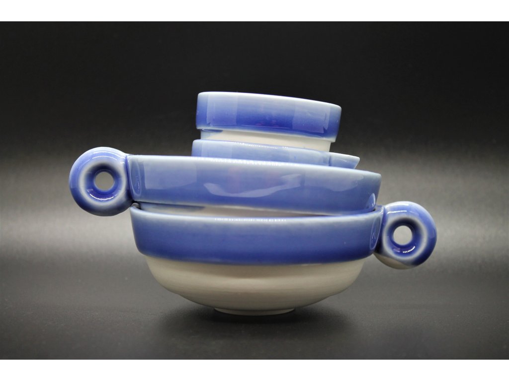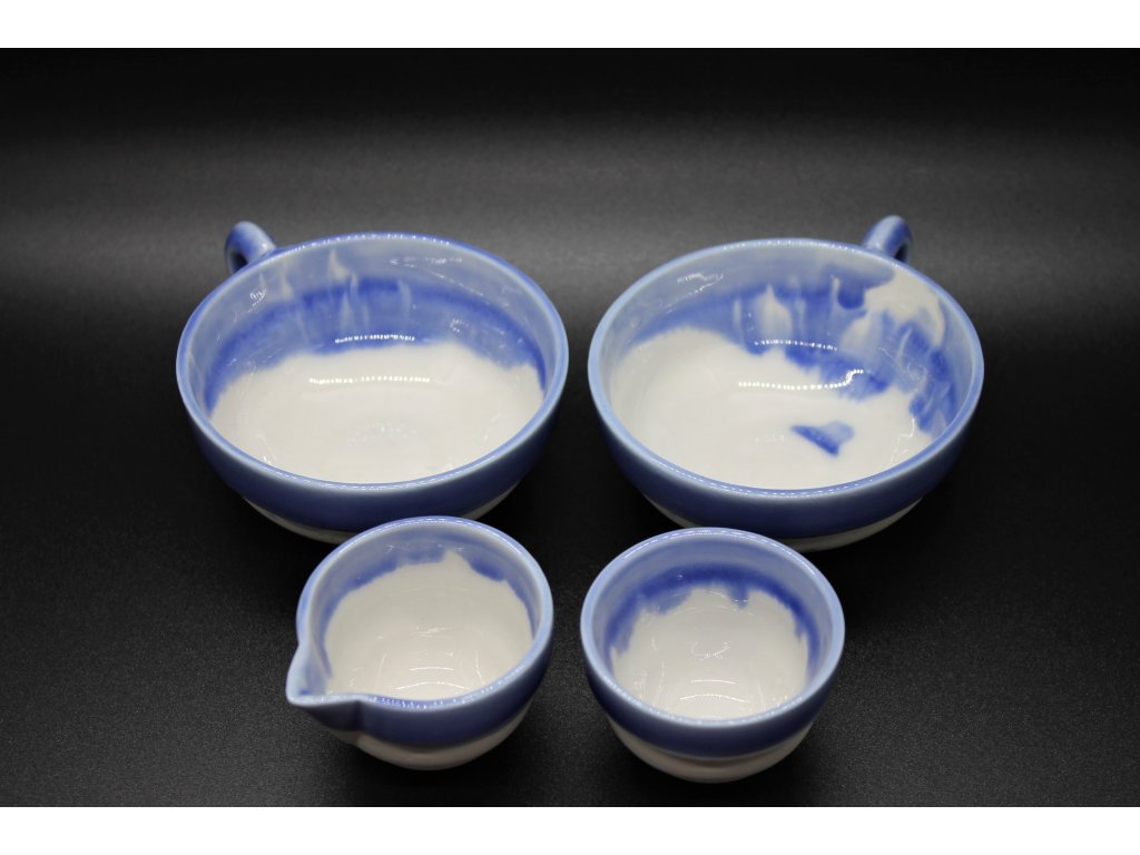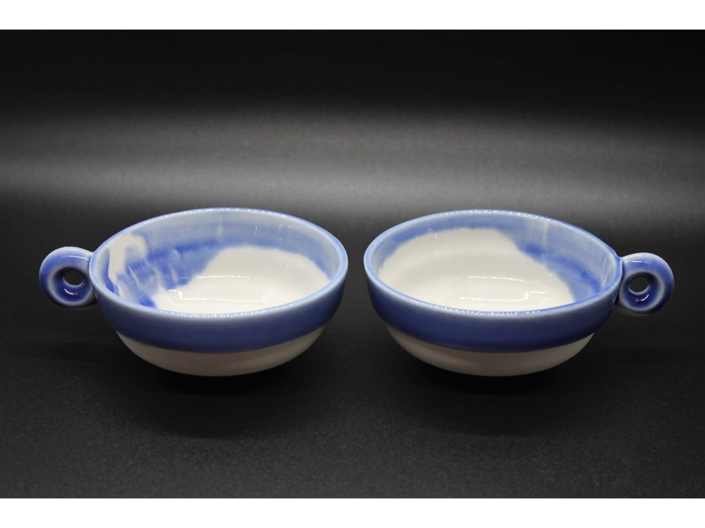 Két személyes, resszókávés készlet, kobaltkék díszítéssel.